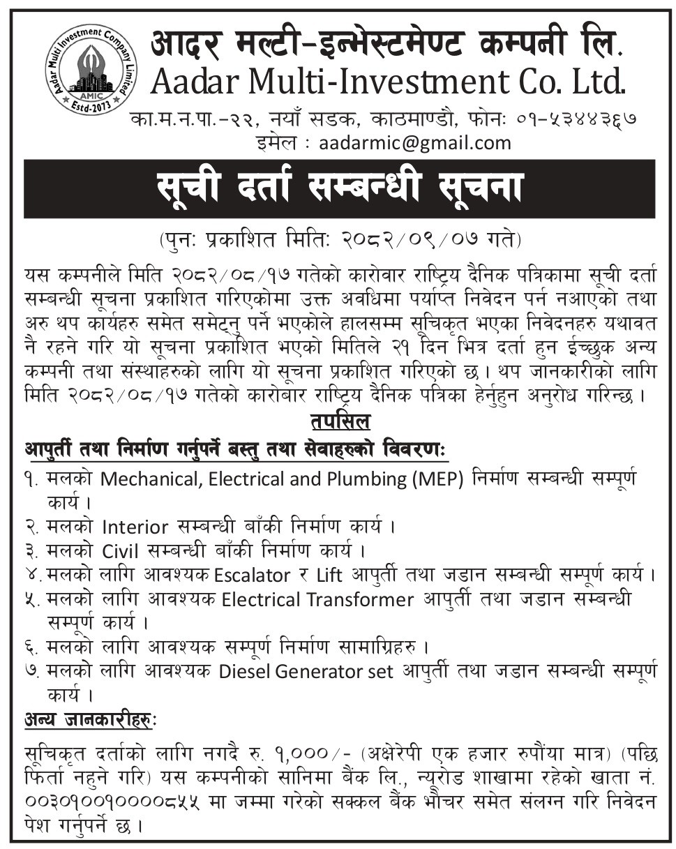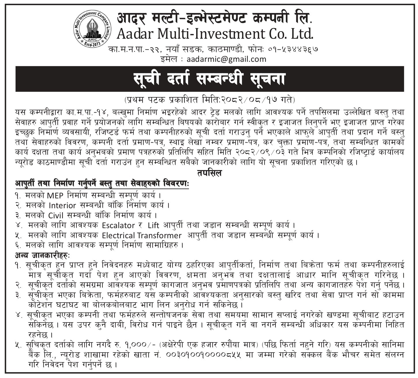 © 2026 प्रतिलिपि अधिकार आदर मल्टिइन्भेष्टमेन्ट कम्पनी लिमिटेड