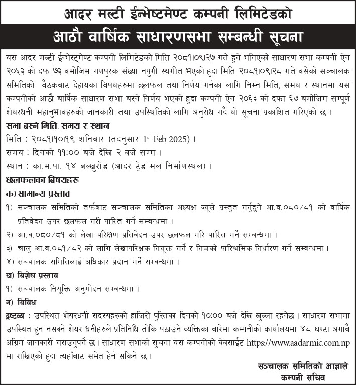 © 2026 प्रतिलिपि अधिकार आदर मल्टिइन्भेष्टमेन्ट कम्पनी लिमिटेड