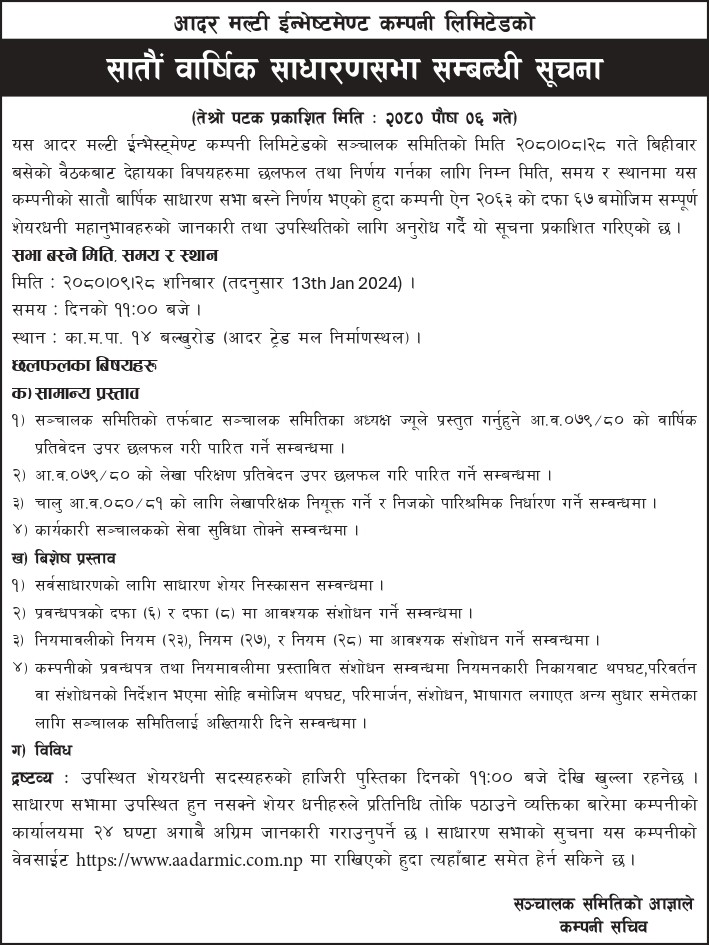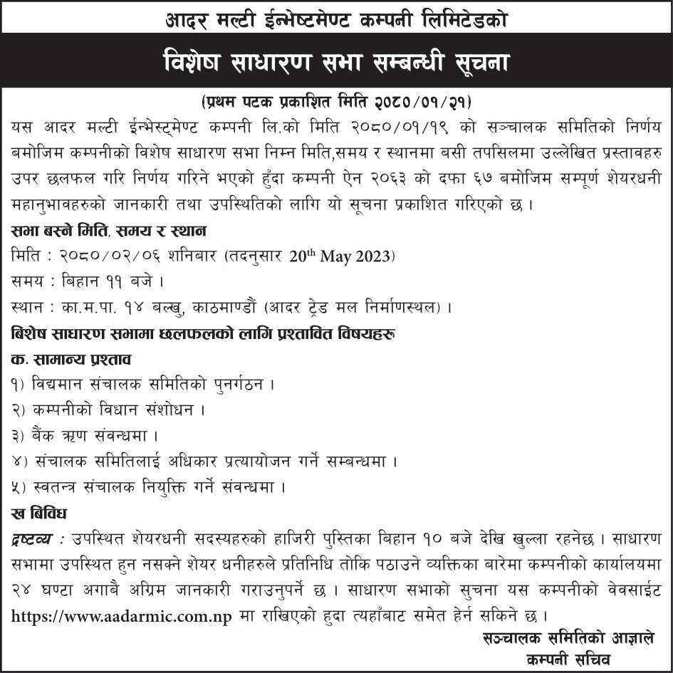 © 2026 प्रतिलिपि अधिकार आदर मल्टिइन्भेष्टमेन्ट कम्पनी लिमिटेड