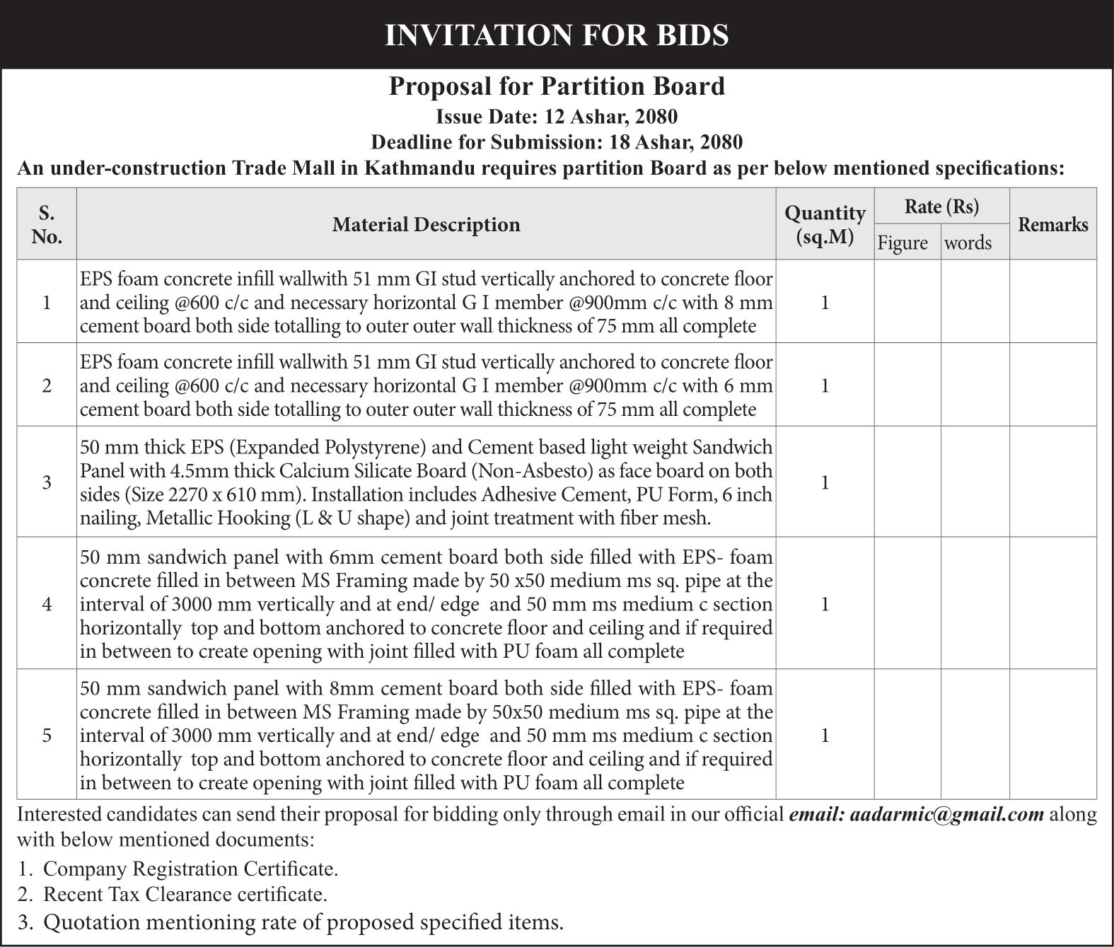 Proposal for Partition Board